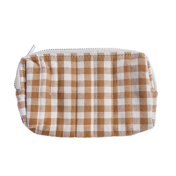 El neceser pequeño con estampado de cuadro vichy, de dimensiones 18x11x8cm, combina estilo y sostenibilidad. Su exterior está fabricado con 100% algodón, mientras que el interior utiliza un 100% de poliéster reciclado. Este práctico neceser es ideal para llevar tus artículos de cuidado personal de forma organizada y con un toque de moda. El estampado de cuadro vichy le añade un atractivo visual adicional. Con esta elección, no solo tendrás un accesorio funcional, sino que también contribuirás al cuidado del medio ambiente.