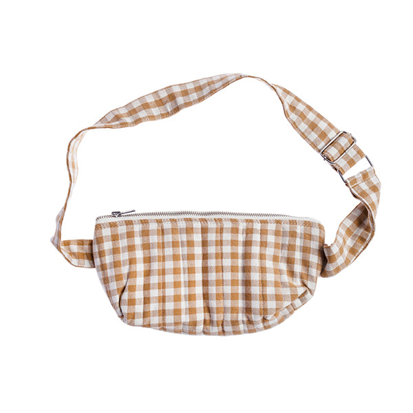 La riñonera con estampado de cuadro vichy, con dimensiones de 30x15x8cm, está fabricada con un exterior de 100% algodón y un interior de 100% poliéster reciclado. Este accesorio no solo es práctico para llevar tus pertenencias de forma cómoda, sino que también presenta un diseño atractivo con el clásico patrón de cuadro vichy. Además, su composición con materiales reciclados contribuye a la sostenibilidad. Luce a la moda mientras mantienes tus artículos esenciales a mano con esta riñonera estilizada y respetuosa con el medio ambiente.